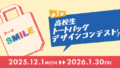 2023.12.07 開催中のコンテスト 第3回 高校生トートバッグデザインコンテスト 過去のコンテスト 第1回 高校生トートバッグデザインコンテスト 第1回 高校生Tシャツデザインコンテスト 第2回 高校生トートバッグデザインコンテスト 第2回 高校生Tシャツデザインコンテスト お知らせ 【結果発表】第3回トートバッグデザインコンテスト 今回は300点近くの応募がありました。ご応募いただいた皆様ありがとうございました。最優秀賞、優秀賞ほか、各賞を発表いたします!【最優秀賞】1名 トートバッグ・図書カード10,000円分贈呈、賞状授与【優秀賞】2名 トートバッグ・図書カード5… 2026.02.24 【結果発表】第2回Tシャツデザインコンテスト 今回は100点近くの応募がありました。ご応募いただいた皆様ありがとうございました。最優秀賞、優秀賞ほか、各賞を発表いたします!【最優秀賞】1名 Tシャツ・図書カード10,000円分贈呈、賞状授与【優秀賞】2名 Tシャツ・図書カード5,000… 2025.10.242025.11.06 第2回高校生Tシャツデザインコンテスト作品募集! 第2回高校生Tシャツデザインコンテストの開催が決定いたしました!今回のテーマは「Color」。テーマの中で自由にデザインしてください。受賞者にはあなたがデザインしたTシャツをプレゼントします!高校生の皆さん、夏休み期間中にチャレンジしてみま… 2025.07.07